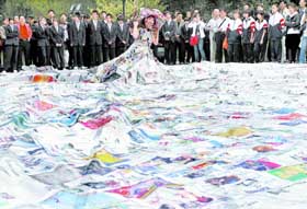 舊報(bào)紙裁出200平方米大裙子