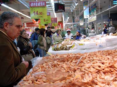 西班牙馬德里市民日前在超市內(nèi)選購食品。根據(jù)西班牙農(nóng)業(yè)、漁業(yè)和食品部統(tǒng)計(jì),在圣誕節(jié)期間,西班牙家庭在食品上的開支將比平常月份增加30%。整個圣誕期間,西班牙人將在購買食物上總共花費(fèi)近60億歐元。
