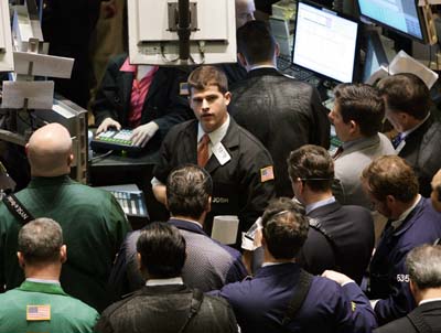 1月3日,人們?cè)诿绹?guó)紐約證券交易所進(jìn)行交易。當(dāng)天是紐約股市2007年開市第一天。紐約股市三大股指2006年全年均有不同程度的上漲,其中,道瓊斯指數(shù)全年漲幅超過16%。繼去年10月19日突破12000點(diǎn)大關(guān)之后,道瓊斯指數(shù)又在12月28日創(chuàng)下了12529.88點(diǎn)的盤中歷史新高。