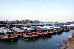 1月6日,在安徽裕溪口閘前的水道上,許多貨船?吭诎哆叺却^閘。近一兩個月以來,巢湖水域和長江安徽段降水較少,再加上連續(xù)干旱等原因,水位持續(xù)偏低,通過連接巢湖水域和長江的裕溪河航道的船只必須排隊逐一通過裕溪口閘。