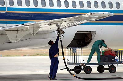 1月21日,三亞鳳凰國際機場的地勤人員正在為一架民航客機補充燃油。