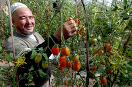 2月5日,維吾爾族農(nóng)民艾則孜·阿布拉在溫室大棚里收獲番茄。地處塔里木盆地南緣的新疆墨玉縣農(nóng)民在當(dāng)?shù)卣囊龑?dǎo)下,利用充足的光熱資源,生產(chǎn)反季節(jié)高附加值蔬菜,實(shí)現(xiàn)農(nóng)民增收。