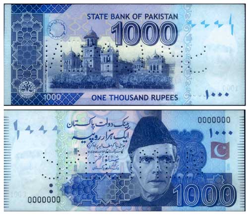 這張2月24日拍攝的照片顯示的是巴基斯坦發(fā)行的新版1000盧比紙幣的正面和反面圖案。巴基斯坦中央銀行當(dāng)天正式發(fā)行了1000盧比的新版紙幣。新紙幣采用了先進(jìn)的防偽技術(shù),大大減小了被偽造的風(fēng)險(xiǎn)。