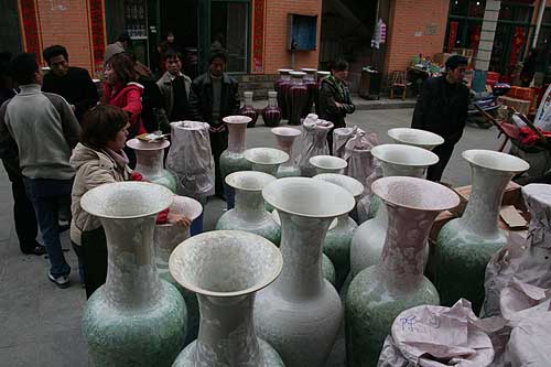3月11日,中國瓷都景德鎮(zhèn)國際商貿(mào)廣場一片繁忙景象。據(jù)介紹,景德鎮(zhèn)市2006年完成陶瓷產(chǎn)值32億元,比上年增長25.6%。2007年,景德鎮(zhèn)市欲充分利用瓷都品牌的良好平臺,積極承接國內(nèi)陶瓷產(chǎn)業(yè)轉(zhuǎn)移,爭取引進一批產(chǎn)值超10億元的陶瓷企業(yè),力爭全市陶瓷生產(chǎn)總值過100億元。