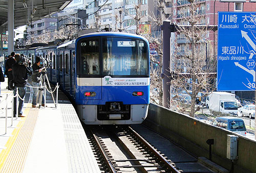 20日,“世博號(hào)”列車在日本首都東京緩緩駛?cè)胝九_(tái)。當(dāng)日,日本“上海周”主體活動(dòng)暨“迎世博·流動(dòng)的上!睌z影圖片展開幕式在日本東京舉行。這列標(biāo)飾有中國(guó)2010年上海世博會(huì)會(huì)標(biāo)的列車由8節(jié)車廂組成,車廂里布置了320幅有關(guān)上海城市風(fēng)貌、風(fēng)土人情、飲食風(fēng)味、世博展館等方面的彩色圖片。從3月16日至4月30日,“世博號(hào)”列車每日6次往返于東京與橫濱之間,將上海的魅力展現(xiàn)給廣大乘客。 |