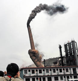 3月24日,山西省蒲縣一家機(jī)焦廠被爆破拆除,還在冒黑煙的煙囪在爆炸聲中轟然倒地。山西省臨汾市蒲縣開始實(shí)施環(huán)境污染整治關(guān)停行動(dòng),3月24日、25日兩天爆破拆除大型機(jī)焦?fàn)t12座。