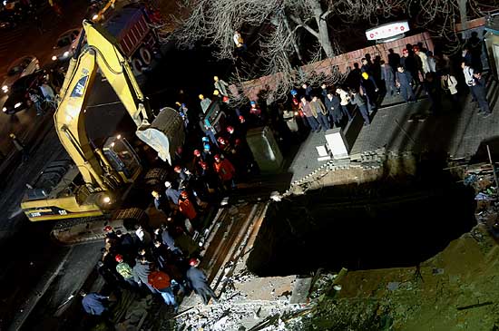 3月28日,搶救人員在清理事故現(xiàn)場。 當日,位于北京市海淀南路的地鐵10號線工程蘇州街車站東南出入口發(fā)生一起塌方事故,六名施工者被埋。截至當日20時30分,北京市有關方面仍在組織搶救,六名工人生死未明。