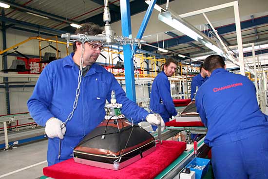 28日,在捷克寧布爾克市,中國長虹歐洲電器有限公司員工在調試電視機。當天,中國長虹歐洲電器有限公司在捷克中部城市寧布爾克正式投產。這是長虹在歐洲最大的投資項目,也是中國家電企業(yè)在歐洲自主投資的第一個海外生產基地。