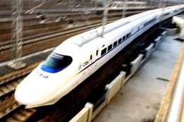 一列高速列車(chē)正從上;疖(chē)站駛出。3月28日,我國(guó)最新高速動(dòng)車(chē)組列車(chē)在鐵路滬寧杭線(xiàn)上首次載客營(yíng)運(yùn),這標(biāo)志著中國(guó)鐵路以此為起點(diǎn),進(jìn)入全新的高速列車(chē)時(shí)代。據(jù)悉,目前運(yùn)行時(shí)速控制在160公里以?xún)?nèi)的動(dòng)車(chē)組最高時(shí)速可達(dá)250公里,具有中國(guó)鐵路的自主知識(shí)產(chǎn)權(quán),安全、高速、環(huán)保等特點(diǎn)顯著,是當(dāng)今世界高速鐵路重點(diǎn)發(fā)展的運(yùn)輸裝備。 |