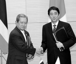 當(dāng)韓美達(dá)成自由貿(mào)易協(xié)定(FTA)的時候,日本建立自己的全球貿(mào)易網(wǎng)絡(luò)的愿望變得前所未有的強(qiáng)烈。最近一段時間,日本政府高官們親自出馬,穿梭于各個場合,積極推動大小區(qū)域經(jīng)濟(jì)合作。3日,日本首相安倍晉三與到訪的泰國總理素拉育舉行會談,并簽署了以自由貿(mào)易協(xié)定為核心內(nèi)容的日泰經(jīng)濟(jì)合作協(xié)定。與此同時,日本內(nèi)閣官房長官鹽崎恭久也透露, 日本的視野開始變得更為廣闊,不但積極謀求與韓國重啟自貿(mào)談判,還積極與美國、加拿大、新西蘭等國進(jìn)行接觸,以期為進(jìn)一步達(dá)成自貿(mào)協(xié)議做好鋪墊。經(jīng)財(cái)大臣大田弘子則表示,正在審視日美建立FTA的“利與弊”。
