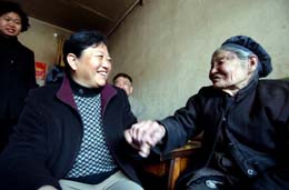 4月3日,蘭州市城關(guān)區(qū)渭源路街道蘭州大學(xué)社區(qū),社區(qū)工作人員在和81歲的趙蘭英聊天。蘭州市城關(guān)區(qū)民政部門投入100萬(wàn)元,在全區(qū)129個(gè)社區(qū)展開居家養(yǎng)老服務(wù)工作,使全區(qū)1000多名老年人居住在家就能享受到政府提供的養(yǎng)老服務(wù)。