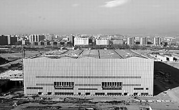 奧運會的主會場——國家體育場(鳥巢),由24榀門式桁架圍繞著體育場內(nèi)部碗狀看臺區(qū)旋轉(zhuǎn)而成,結(jié)構(gòu)科學簡潔,設(shè)計新穎獨特,是當今國際上極富特色的巨型建筑,其鋼結(jié)構(gòu)屋蓋呈雙曲面馬鞍型,東西長298米、南北長333米,檐高達68.5米,總建筑面積約25.8萬平方米!傍B巢”設(shè)計方案被專家們認為“在世界建筑設(shè)計史上具有開創(chuàng)性的意義”,也是世界上獨一無二的建筑,運用新科技、新技術(shù)、新工藝解決施工難題,在國家體育場工程建設(shè)中隨處可見。國家體育場鋼結(jié)構(gòu)肩部設(shè)計為彎扭構(gòu)件,這種設(shè)計在世界建筑史上沒有先例。敢于啃硬骨頭的北京城建人再次揚起了科技攻關(guān)的風帆,技術(shù)人員針對這一問題展開科技創(chuàng)新和技術(shù)攻關(guān),最終,在設(shè)計單位和寶鋼、首鋼、鞍鋼、武鋼及舞鋼等國內(nèi)7家鋼鐵廠的通力合作下,經(jīng)過近百次的試驗、測算、測試,成功地軋出了符合施工要求、完全由我國自主研發(fā)的Q460高強度鋼材。這一新成果的開發(fā)應用,不僅滿足了工程建設(shè)的需要,為“鳥巢”建設(shè)贏得了時間,也填補了我國該項技術(shù)領(lǐng)域的空白!傍B巢”鋼材焊接的焊縫總長達30多萬米,其中現(xiàn)場焊接焊縫長達6萬多米。按工期要求,近一半現(xiàn)場鋼材焊接要在冬季進行。北京冬季的室外氣溫常在零攝氏度以下,而焊接一般要求在零攝氏度以上的“正溫”條件下進行。面對這一難題,技術(shù)人員迅速展開“負溫焊接技術(shù)研究”,并研制出零攝氏度以下進行焊接的技術(shù)參數(shù),解決冬季負溫焊接的難題。這一問題的解決,有力地保證了工程焊接質(zhì)量,為建設(shè)精品工程打下堅實的基礎(chǔ)。