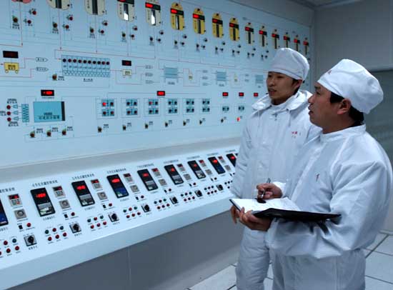 4月9日,遠(yuǎn)大蜀陽藥業(yè)的駐廠監(jiān)督員陳飛(右)檢查制藥流程模擬系統(tǒng)。四川近日正式啟動駐廠監(jiān)督員制度,派員定期或不定期對高風(fēng)險(xiǎn)品種藥廠生產(chǎn)和質(zhì)量管理的各個環(huán)節(jié)進(jìn)行安全監(jiān)管,目前首批駐廠監(jiān)督員已進(jìn)駐了3家血液制品、疫苗生產(chǎn)企業(yè)。