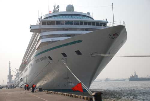 4月9日上午,巴哈馬籍豪華郵輪“水晶交響”號靠泊天津港客運碼頭。這是今年到達天津港的第五艘、也是最大一艘國際豪華郵輪。該郵輪共有千余名旅客,分赴京津等地觀光旅游。今年8月份,國際豪華郵輪“愛蘭歌娜”號將以天津港為母港開通國際旅游航線,天津港將邁向郵輪母港。