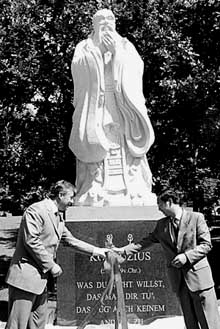 2007年4月9日,孔子學院總部揭牌儀式在京舉行。記者獲悉,到2010年,全球?qū)⒔ǔ?00所孔子學院和孔子課堂。 |