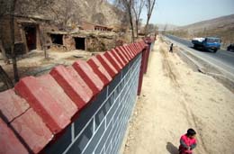 甘肅永靖縣是國(guó)家扶貧重點(diǎn)縣,全縣貧困面10%,個(gè)別鄉(xiāng)鎮(zhèn)的貧困面更是達(dá)到70%以上。記者近日在永靖縣采訪時(shí)發(fā)現(xiàn),這個(gè)縣部分公路兩邊,砌了九處、總長(zhǎng)度兩公里多的高墻,用來擋住農(nóng)民破舊的房屋和院落,村莊看上去鮮亮整潔。而當(dāng)?shù)匾恍┐迕裣蛴浾叻从,在這些墻體的后面,還有部分農(nóng)戶家里缺糧斷水,生活極其貧困。