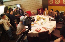 由河北省石家莊市西兆通鎮(zhèn)的村民郝俊臣與五個農(nóng)民朋友籌資50萬元,自拍、自導(dǎo)、自演的高清晰電影《山杏》近日在石家莊市緊張拍攝。該影片描寫的是河北貧困山區(qū)的女孩山杏考上大學(xué),在村民的幫助下交上學(xué)費,畢業(yè)后她婉言謝絕男朋友的挽留,毅然回到家鄉(xiāng),用學(xué)到的農(nóng)業(yè)科學(xué)知識幫助鄉(xiāng)親們致富的故事。影片中主要演員有六人是土生土長的農(nóng)民。據(jù)了解,這部電影是廣電總局立項批準(zhǔn)的中國農(nóng)民自己拍攝的第一部高清晰電影。圖為電影《山杏》的一個拍攝場景。 |