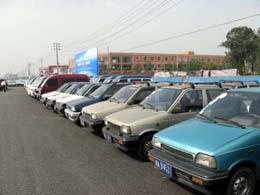 4月22日,為紀(jì)念第38個“世界地球日”,成都市舉行“整治機(jī)動車尾氣 報廢高污染車輛 改善大氣質(zhì)量”主題活動。自2006年9月成都對高污染汽車實行城區(qū)限行以來,共轉(zhuǎn)出、報廢未達(dá)標(biāo)的高污染汽車13000多輛。圖為即將被拖到報廢廠的高污染車輛。
