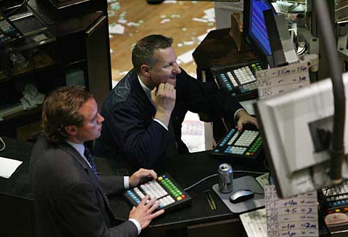 24日,兩名交易員在美國紐約證券交易所股票交易大廳工作。當(dāng)日紐約股市收盤時,道瓊斯指數(shù)較前一個交易日上漲34.54點(diǎn),收于12953.94點(diǎn),漲幅為0.27%。道瓊斯指數(shù)盤中曾創(chuàng)下12989.86點(diǎn)的歷史新高,步步迫近13000點(diǎn)大關(guān)。