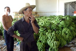 5月24日,海南瓊海市塔洋鎮(zhèn)農(nóng)民面對低迷的香蕉價格愁容滿面。近日,關(guān)于“香蕉含類似SARS病毒”的信息在國內(nèi)部分手機用戶間流傳。農(nóng)業(yè)部市場司副司長張興旺認(rèn)為,“香蕉含類似SARS病毒”的說法是沒有任何科學(xué)依據(jù)的,純屬謠言。海南香蕉市場因這條短信出現(xiàn)波動,雖銷量沒什么影響,但是在價格上每500克下降了0.1至0.2元。 |