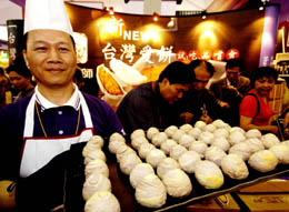 5月18日,來自臺(tái)灣先麥?zhǔn)称饭煞萦邢薰镜母恻c(diǎn)師沈國圣先生在第九屆海峽兩岸經(jīng)貿(mào)交易會(huì)上向市民展示現(xiàn)場制作的名點(diǎn)——臺(tái)灣愛餅。 當(dāng)日,第九屆海峽兩岸經(jīng)貿(mào)交易會(huì)在福州展覽城開幕,各式各樣的臺(tái)灣名點(diǎn)亮相交易會(huì),吸引了眾多榕城市民前來品嘗選購。 |