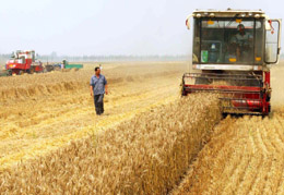 5月28日,大型聯(lián)合收割機(jī)在安徽潁上縣垂崗鄉(xiāng)收割小麥。連日來,安徽省各地天氣晴好,全省3200多萬畝小麥全面進(jìn)入收獲期。為搶農(nóng)時(shí),全省組織6.5萬臺(tái)聯(lián)合收割機(jī)會(huì)戰(zhàn)夏收,預(yù)計(jì)機(jī)收率將達(dá)94%。農(nóng)機(jī)部門還采取開辟農(nóng)機(jī)加油綠色通道、送油到田間等措施,確保機(jī)收工作順利進(jìn)行。 |