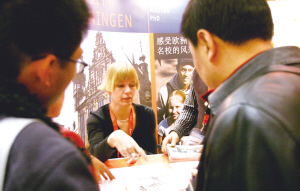 來自教育部的消息,2002年以來,中國公民出國留學(xué)人數(shù)每年都超過了10萬人,自費(fèi)留學(xué)人數(shù)占絕大比例。張勤攝 | 相對于上世紀(jì)的精英出國留學(xué)深造,如今的出國留學(xué)幾乎演變成了高考落榜生的“救命稻草”,而這種無奈的選擇,產(chǎn)生了人們始料未及的后果正日益顯現(xiàn),引起人們的深思。 高考剛剛過去,各種留學(xué)說明會相繼舉辦,考生和家長們又開始新一輪的勞碌奔走。6月10日上午,英、美、澳、加的21所世界名校在北京舉行了一場集體招生面試會。數(shù)千名來自本市及周邊地區(qū)的學(xué)生家長紛紛趕到會場,咨詢并辦理海外留學(xué)的相關(guān)事宜。 據(jù)了解,前來咨詢的有不少高三學(xué)生和家長。為了這次海外知名高校集體招生會,來自遼寧的一家三口提前一天就特地趕到北京。 “一輛夏利的錢就可以供出個留學(xué)生”,這樣的廣告語叫不少考生家長都動了心。自費(fèi)出國留學(xué)人數(shù)近年來呈現(xiàn)遞增趨勢,尤其以高中畢業(yè)生出國留學(xué)居多,其原因一般有二:一種是高考分?jǐn)?shù)沒上本科線或僅上了?凭,考生不滿意,家長不甘心,加上家庭條件比較好,故選擇出國讀本科;一種是近年來出國留學(xué)的人數(shù)增多,大學(xué)畢業(yè)出國留學(xué)也存在一定的難度,所以一些家長想早早把孩子送出去接受國外教育。