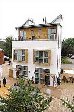 這也是英國(guó)第一座將來(lái)能夠大規(guī)模推廣的生態(tài)住宅,其環(huán)保設(shè)計(jì)能減少80%的燃料費(fèi)開支,每年可為住戶節(jié)約能源費(fèi)開支800英鎊。英國(guó)政府有規(guī)定,購(gòu)買售價(jià)為12.5萬(wàn)~25萬(wàn)英鎊的不動(dòng)產(chǎn),消費(fèi)者需繳納大約1%的印花稅。但如果花20萬(wàn)英鎊購(gòu)買類似生態(tài)住宅,就可免繳2000英鎊的印花稅。 候任英國(guó)首相戈登·布朗上周也宣布,英國(guó)計(jì)劃將推出2000套類似的生態(tài)住宅。 公司總裁斯圖亞特·米爾恩表示:“這是未來(lái)5年內(nèi)能大規(guī)模推廣到市場(chǎng)的原創(chuàng)性生態(tài)住宅。而該住宅一旦大規(guī)模推廣,這種建筑就可能被授予‘六星級(jí)’最高星級(jí)的認(rèn)證。”這座生態(tài)住宅的造價(jià)還不清楚。但公司方面稱,其成本不會(huì)高于傳統(tǒng)的磚式或鋼筋混凝土式住宅。 |