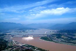 三峽大壩全景圖(6月24日攝)。由于近期三峽水庫入庫流量猛增,目前三峽電廠15臺機組全部啟動發(fā)電,全廠出力達到1010萬千瓦,創(chuàng)造了三峽電廠自接機發(fā)電以來的最大出力。