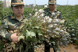 6月26日,邊防民警在鏟除非法種植的罌粟。