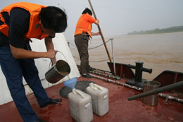 7月2日,濼口水文站的工作人員在監(jiān)測(cè)水情。 當(dāng)日,受黃河調(diào)水調(diào)沙和連續(xù)降雨的影響,黃河下游出現(xiàn)10年來(lái)最大洪水,濟(jì)南附近的濼口水文站8時(shí)的流量達(dá)到每秒3680立方米。隨著小浪底水庫(kù)下泄流量大幅減少,黃河下游洪水將迅速回落。 |