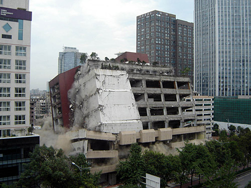 7月5日,位于成都市中心的成都百貨大廈爆破倒塌的瞬間。