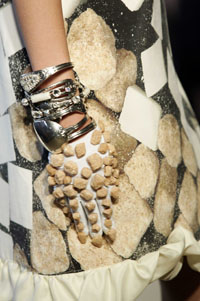 金屬、小石子、塑料片讓手套、鞋子也精彩。