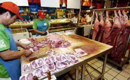8月5日,廈門一家超市銷售人員在分裝豬肉。廈門市從調(diào)集豬肉貨源、扶持養(yǎng)豬業(yè)發(fā)展等多方面平抑豬肉價格,目前市場豬肉供應(yīng)貨源充足,價格逐漸回落。