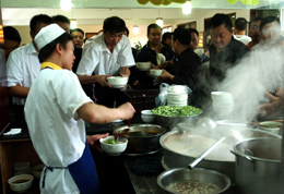 7月份以來,蘭州市物價局對蘭州牛肉面施行“限價”,大碗牛肉面價格不得超過2.5元,小碗不得超過2.3元!皟r格禁令”實施后,價格低廉實惠的牛肉面依然是市民青睞的對象。目前蘭州市大部分牛肉面館生意火暴。