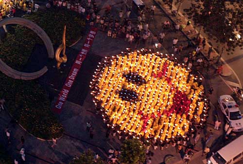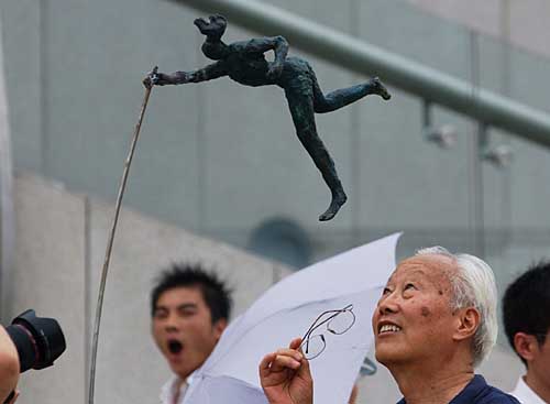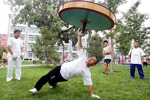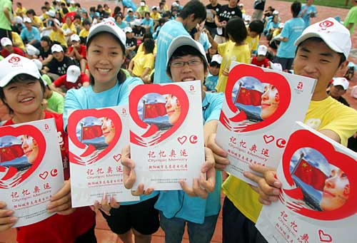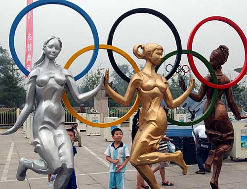 人們以各自不同的方式慶祝北京奧運(yùn)會倒計時一周年。新華社發(fā)