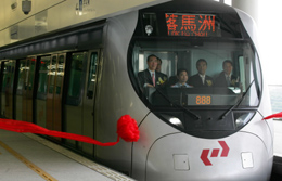 8月15日,香港特區(qū)政府政務(wù)司司長唐英年(左一)等出席落馬洲支線通車儀式。
