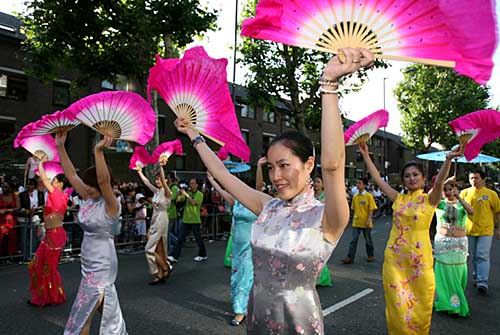 27日,在英國首都倫敦舉行的諾丁山狂歡節(jié)上,當?shù)厝A人社團進行表演。當天,為期兩天的諾丁山狂歡節(jié)落下帷幕。英國一年一度的諾丁山狂歡節(jié)是歐洲范圍內規(guī)模最大的狂歡節(jié),也是僅次于巴西里約熱內盧狂歡節(jié)的世界第二大狂歡節(jié),今年吸引了近兩百萬人參加。