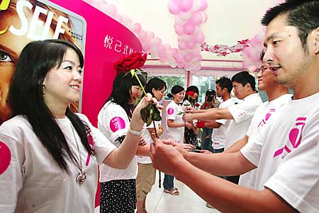 近年來(lái),“相親”這個(gè)古老主題開(kāi)始重回人們視線,隨之而來(lái)的卻是諸如“剩男剩女”“大齡青年”等一些無(wú)奈字眼。緊湊的生活節(jié)奏,日益加劇的社會(huì)壓力使相親不可避免地成為很多城市單身白領(lǐng)的生活場(chǎng)景。8月29日至9月4日,一個(gè)倡導(dǎo)“悅己式快樂(lè)相親”的活動(dòng)在上海舉行。所謂“悅己式”,即鼓勵(lì)都市男女勇敢自主地選擇、積極樂(lè)觀地對(duì)待婚戀,這有別于傳統(tǒng)意義上充滿壓力和緊張感的相親。一起做美食,或一起來(lái)段熱舞,交友變得簡(jiǎn)單、輕松,不再給雙方壓力。 | |