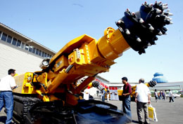 9月4日,人們在展會上參觀掘進(jìn)機(jī)。