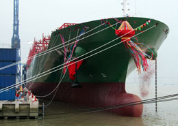 9月8日,我國(guó)第一艘擁有完全自主知識(shí)產(chǎn)權(quán)的8530箱超大型集裝箱船在上海交付船東。 這艘名為“新亞洲”號(hào)的超大型集裝箱船船體總長(zhǎng)335米,設(shè)置九個(gè)貨艙,總裝箱量達(dá)8530標(biāo)準(zhǔn)箱,載重量10.1萬噸,航速25節(jié)。它是目前中國(guó)自主設(shè)計(jì)建造完成的最大型集裝箱船。 |