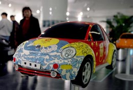 “奧運(yùn)繪”藝術(shù)車(chē)大賽獲獎(jiǎng)作品展日前在北京王府井舉行。這些彩繪車(chē)模作品運(yùn)用青花瓷器、剪紙、京劇等中國(guó)元素,將奧運(yùn)形象融合其中。