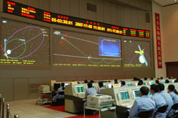 11月5日,科技人員在北京航天飛行控制中心指控大廳內(nèi)精心操作。當(dāng)日11時37分,北京航天飛行控制中心對嫦娥一號衛(wèi)星成功實施第一次近月制動,順利完成第一次“太空剎車”動作。衛(wèi)星被月球捕獲,進(jìn)入環(huán)月軌道,成為我國第一顆月球衛(wèi)星。
