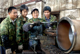 11月14日,南昌市青山湖區(qū)揚(yáng)子洲鄉(xiāng)幾名農(nóng)村青年在師傅的指導(dǎo)下學(xué)習(xí)車床技術(shù)。為加強(qiáng)對(duì)農(nóng)村勞動(dòng)力的技能培訓(xùn),并為各工業(yè)園區(qū)輸送合格的技能人才,南昌勞動(dòng)保障部門日前決定今年內(nèi)培訓(xùn)萬名“金藍(lán)領(lǐng)”。 |