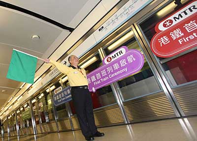12月2日,香港鐵路有限公司行政總裁周松崗指揮兩鐵合并后的首班列車啟航。