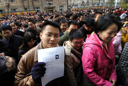 12月9日,在南京林業(yè)大學(xué)考點(diǎn)參加國(guó)家公務(wù)員招錄考試的考生們進(jìn)入考場(chǎng)。 當(dāng)日,2008年中央機(jī)關(guān)及其直屬機(jī)構(gòu)公務(wù)員招錄考試公共科目筆試在全國(guó)31個(gè)省、市、自治區(qū)同時(shí)進(jìn)行。此次考試江蘇省安排了南京主考區(qū)和無(wú)錫、徐州、揚(yáng)州三個(gè)分考區(qū),共設(shè)32個(gè)考點(diǎn),1366個(gè)考場(chǎng),考生總數(shù)為38667名,人數(shù)創(chuàng)歷年之最。 |