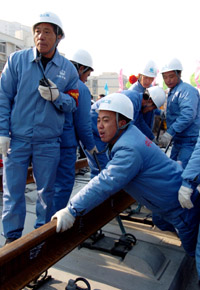 12月16日上午,京津城際鐵路跨天津市新開路立交橋橋頭鋪下最后一根鋼軌,順利實現(xiàn)全線貫通。京津城際鐵路2008年初進入綜合調(diào)試階段,北京奧運會前將正式開通并投入運營,屆時北京、天津間火車全程直達運行僅需30分鐘。
