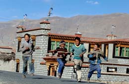 12月19日,西藏尼木縣尼木鄉(xiāng)日措村幾名兒童在村間柏油路上玩耍。