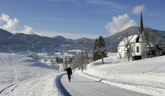 1月1日,在德國(guó)南部城鎮(zhèn)加米施-帕滕基興附近,一名行人在白雪皚皚的路間行走。當(dāng)日,德國(guó)一些地區(qū)降下2008年的第一場(chǎng)雪。