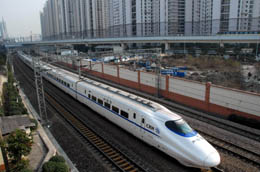 1月6日,一輛“和諧號(hào)”列車從京滬鐵路線上駛過。 2008年1月5日,鐵道部下屬的鐵道工程交易中心公布總價(jià)達(dá)837億元的京滬高鐵土建工程由中國中鐵、中鐵建設(shè)集團(tuán)有限公司等六家公司承建。據(jù)介紹,京滬高速鐵路工程預(yù)計(jì)將在春節(jié)前開工。
